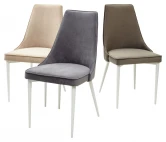 Сиденье обито велюром. Велюр прост в уходе и не теряет внешний вид длительное время. Наполнитель - пенополиуретан высокой плотности, который не теряет форму и не деформируется при длительном использовании. Ножки стула - металл белого цвета. Упакован - 4 шт./2 кор.
