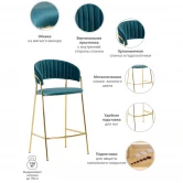 Стул полубарный Turin бирюзовый с золотыми ножками