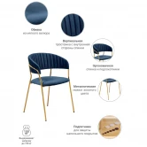 Материал: фанера, спонж, велюр Материал ножек: сталь Цвет ножек: золотой Размер: 56х50х78х48 см Вес: 5,5кг Максимальная нагрузка 150кг Поставляется в разобранном виде. В комплекте идёт инструкция и комплект аксессуаров для сборки.