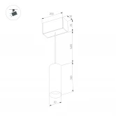 Светильник подвесной для магнитных треков шириной 25мм, 5Вт. Цвет свечения ТЕПЛЫЙ 3000K, световой поток 300лм, угол 45°, CRI>90. Корпус цилиндрический, металл, цвет черный с золотой вставкой, IP20. Размер светового модуля 30*300 мм; размер установочного модуля 200*20*25мм; длина подвеса 1400 мм. Входное напряжение DC24V, мощность 5Вт. Драйвер DС24V/AC230V поставляется отдельно. Диммируется только с 026407, 027633.