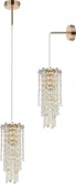 Светильник подвесной-настенный коллекции Rain of Crystal выполнен из металла, гальванизированного в цвет золота, и декорирован хрусталем высшей категории прозрачного и янтарного цветов. Благодаря специальному креплению, входящему в комплект, светильник данной коллекции имеет возможность установки как на потолок, так и на стену.