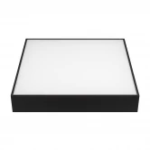 Накладной светильник. Мощность 40 Вт, св. поток 2590-3200 лм, 80 лм/Вт, дневной 4000 K, CRI>90, угол 120°, напряжение питания 230 В. Черный квадратный корпус из алюминия, экран PC, степень защиты IP40. Размер: длина 400 мм, ширина 400 мм, высота 64 мм. Монтаж накладной. Драйвер 27-40 В, 1000 мА, пульсация <5%.