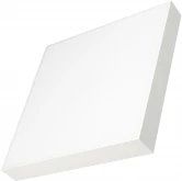 Накладной светильник. Мощность 50 Вт, св. поток 4100-4400 лм, 80-90 лм/Вт, дневной 4000 K, CRI>90, угол 120°, напряжение питания 230 В. Белый квадратный корпус из алюминия, экран PC, степень защиты IP40. Размер: длина 500 мм, ширина 500 мм, высота 64 мм. Монтаж накладной. Драйвер 27-42 В, 1200 мА, пульсация <5%.