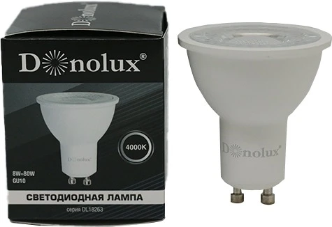 Лампочка светодиодная DL18263N8GU10 от бренда Donolux с цоколем GU10. Цвет свечения – нейтральный, цветовая температура 4000 К. Питание от сети 220 В. Степень защиты от влаги и пыли IP20. Заказывайте Donolux DL18263N8GU10 онлайн по низкой цене с гибкими условиями доставки на Fedomo.ru!