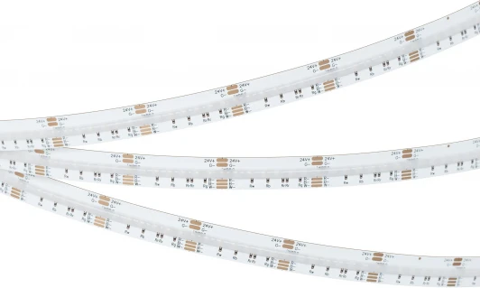 Светодиодная лента COB серии X840, светодиоды CSP, 840 светодиодов на метр, мощность 17.2 Вт/м. Предназначена для мультицветной декоративной подсветки интерьера: торцевой подсветки, подсветки стеклянных полок, элементов мебели, ниш, декора. Используется для рекламных конструкций и витрин. Сочетание белых и RGB светодиодов позволяет создавать подсветку интерьера с широким выбором свечений.