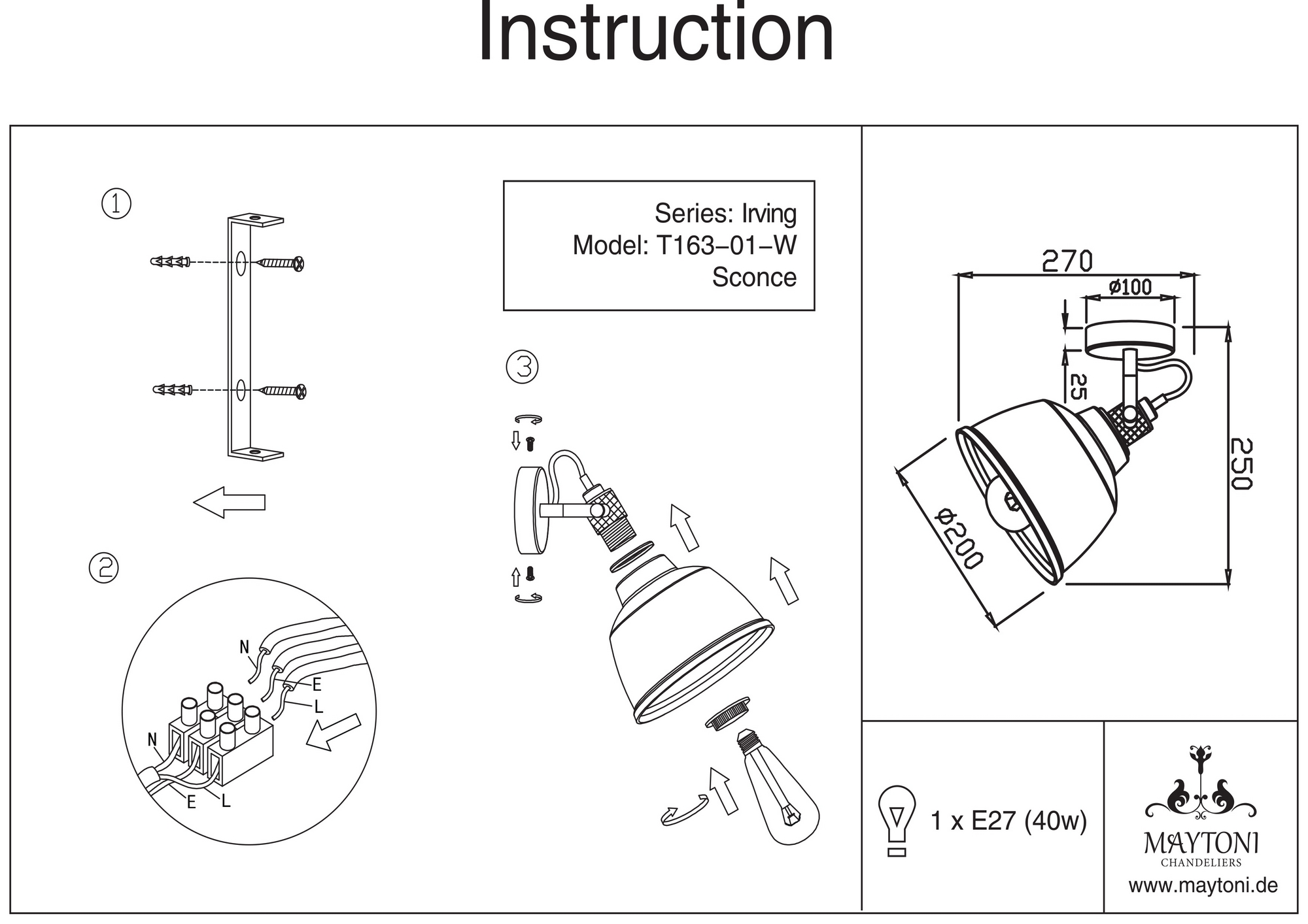 Спот T163-01-W из серии Irving от компании Maytoni удачно впишется в интерьер гостиной, прихожей и коридора, кабинета, оформленных в стиле лофт. Спот имеет 1 плафон и 1 лампочку с цоколем E27 с мощностью 40W, напряжением 220V. Модель поддерживает подключение диммера. Светильник устанавливается на монтажную пластину. Основной цвет и материал арматуры - черный металл, материал плафона - стекло. Лампочки в комплект не входят. Габариты модели: ширина - 200 мм, высота - 270 мм. Лучшая цена и условия доставки на Maytoni T163-01-W в интернет-магазине Fedomo.ru.