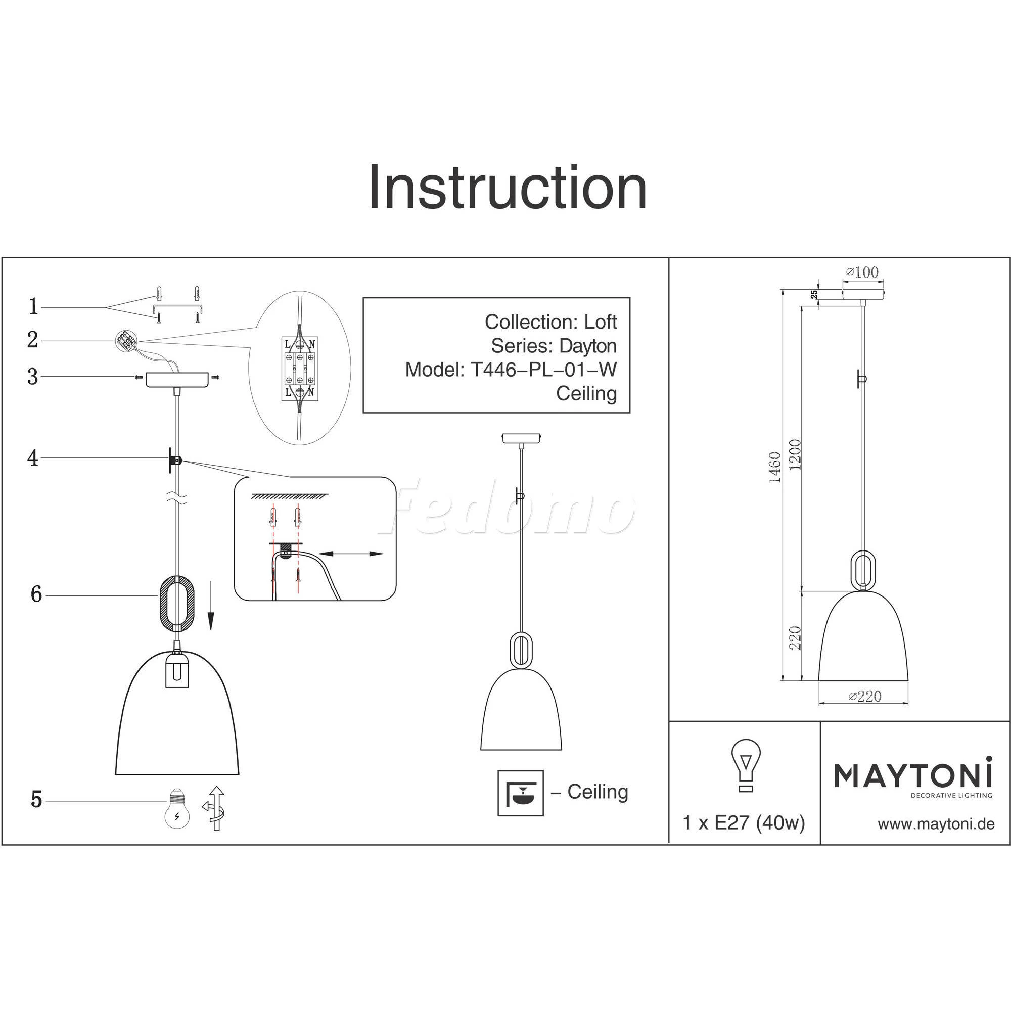Подвесной светильник T446-PL-01-W из серии Maytoni Dayton от компании Maytoni подойдет для освещения кухни, над обеденным столом, над кухонным островом, оформленных в стиле морской. Основной цвет изделия - матовый белый, материал плафона - металл. Рассчитан на 1 лампочку с цоколем E27. Модель с регулировкой по высоте, есть возможность установки диммера. Лучшая цена и условия доставки на Maytoni Dayton T446-PL-01-W в интернет-магазине Fedomo.ru.