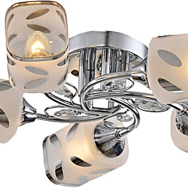 Люстра потолочная TC-120-105 из серии Grace от компании Toscom устанавливается на монтажную пластину. Современная люстра с листьями прекрасно подойдет в качестве источника основного света для гостиной, спальни, кухни, оформленных в стиле флористика. Основной цвет модели - хром, материал арматуры - металл. Люстра имеет 5 плафонов, материал изготовления - глянцевое стекло. Модель оснащена цоколем E14 (4xE14), имеет 4 лампочки с общей мощностью 160W и напряжением 220V. Светильник поддерживает подключение диммера. Габариты: длина - 500 мм, ширина - 500 мм, высота - 110 мм. Лампочки в комплект не входят. Лучшая цена и условия доставки на Toscom TC-120-105 в интернет-магазине Fedomo.ru.