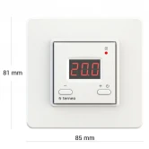 Терморегулятор с термозащитой, функция блокировки управления — защита от детей, встроенный таймер. Максимальная мощность нагрузки - 3000 BA. Напряжение питание 230 В ±10%. Количество коммутаций под нагрузкой, не менее: 50 000 циклов. Количество коммутаций без нагрузки, не менее: 20 000 000 циклов. Диапазон измеряемых температур: от -26 до +76 °С. Температурный гистерезис: 1 °С. Габаритные размеры (без декоративной рамки) (Ш х В): 45 х 45 мм. Габариты упаковки м.: (В х Ш х Д) 0,092 х 0,068 х 0,092. Терморегулятор поставляется в комплекте с рамкой "стандарт". Потребление тока при 230 В: в активном состоянии при максимальной яркости: не больше 6,5 мА. Потребление тока при 230 В: в режиме сна: не больше 1,9 мА. Данный терморегулятор также поставляется в цвете слоновой кости (бежевый), наличие уточняйте у менеджера.