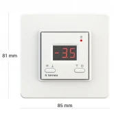 Терморегулятор предназначен для работы с системами антиобледенения и снеготаяния. Для своей работы использует выводной датчик температуры воздуха. Подогрев осуществляется в том диапазоне температуры, при котором может происходить намерзание сосулек на крыше или образование гололедицы на земле. Защита от детей. Потребление тока при 230 В в активном состоянии при максимальной яркости: не больше 6,5 мА. Потребление тока при 230 В в режиме сна: не больше 1,9 мА. Количество коммутаций под нагрузкой, не менее: 50 000 циклов Количество коммутаций без нагрузки, не менее: 20 000 000 циклов. Диапазон измеряемых температур: от -30 до +90 °С. Верхний предел регулирования температуры: от 0 до +10 °С. Нижний предел регулирования температуры: от -1 до -20 °С. Габаритные размеры (без декоративной рамки) (Ш х В):45 х 45 мм.