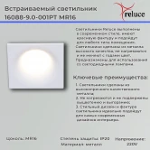 Точечный светильник встраиваемый 16088-9.0-001PT MR16 WT от итальянского бренда Reluce изготовлен из металла в белом цвете. Рассчитан на лампочки с цоколем 1xGU5.3. Стиль – современный. Подходит для установки на потолке в гостиной, в кабинете, в кафе, на кухне, в магазине, в офисе, в прихожей и коридоре, в спальне, в зале. Питание от сети 220 В. Степень защиты от влаги и пыли IP20. Способ крепления – встраиваемый. Габариты: длина 85 мм, ширина 85 мм, высота 35 мм. Заказывайте Reluce 16088-9.0-001PT MR16 WT онлайн по низкой цене с гибкими условиями доставки на Fedomo.ru!
