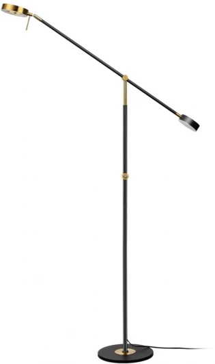 Стильный напольный регулируемый торшер - изюминка любого современного интерьера. В нашем торшере Denzel на корпусе установлен сенсорный диммер, который при длительном нажатии будет обеспечивать "вежливый" свет. Горизонтальное основание вращается на 350°, фронтальный плафон - на 350°+180°, задний - 350°