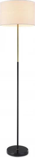 Лаконичный торшер в современном стиле из серии Visalia. Абажур из белой ткани создает мягкое рассеянное освещение. Металлический каркас черного цвета с золотистой вставкой дополняет дизайн и гармонично сочетается с плафоном. Устойчивая подставка с мраморным рисунком надежно удерживает всю конструкцию. Торшер отличный вариант для дополнительного освещения, а универсальный стиль подойдет для любого интерьера комнаты.