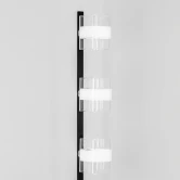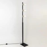 Основание металлическое, цвет чёрный с декоративными хромированными элементами. Плафоны из прозрачного стекла со стильной белой полосой. В светильнике используется 3 лампы с цоколем Е14, форма колбы шарик, максимальной мощностью для ламп накаливания 60Вт