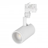 Светильник подвесной для треков/шин 4 провода, 20Вт. Цвет свечения БЕЛЫЙ 6000K, световой поток 1600-2000лм, регулируемый угол 20-60°, CRI>90. Корпус круглый, металл, цвет белый, IP20. Размеры DxHxL Ø88x200x162мм. Входное напряжение AC220-240V, мощность 20Вт. Драйвер встроенный (30-42V, 500mA).