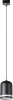 Подвесной светильник на шинопровод черного цвета с закругленным конусообразным плафоном, в который встроено декоративное акриловое кольцо