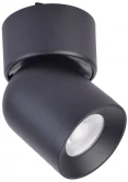 Цилиндрический светильник на шинопровод, черного цвета, с поворотным плафоном - угол наклона 180° и угол вращения 355°.