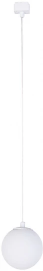Подвесной светильник на шинопровод белого цвета с плафоном из белого выдувного стекла