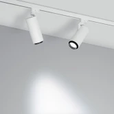 Светильник подвесной для треков/шин 4 провода, 20Вт. Цвет свечения меняется в диапазоне 3000К-6000К (возможность изменения цветовой температуры при помощи диммера DALI), световой поток 1500 лм, 74 лм/Вт, регулируемый угол 20-60°, CRI>90. Корпус круглый, металл, цвет белый, IP20. Размеры DxL Ø80x181мм.. Входное напряжение AC220-240V, мощность 20Вт. Драйвер встроенный 12-54 В, 500 мА. Совместим только с шинопроводом серии С.