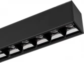 Линейный светодиодный светильник MAG-LASER-45-L480-27W Day4000 (BK, 36 deg, 24V) мощностью 27 Вт для магнитных треков MAG-45. Светодиоды снабжены линзами, расположены в индивидуальных ячейках и обеспечивают узкий угол излучения 36°, подходящий для организации акцентного освещения. Дневной белый цвет свечения (4000 К), световой поток 1700 лм и высокий индекс цветопередачи CRI>90 гарантируют качественное освещение с точной передачей цветовых оттенков. Есть возможность диммирования. У светильника безопасное напряжение 24 В и быстрая установка в шинопровод с помощью магнитов. Драйвер для подключения поставляется отдельно.