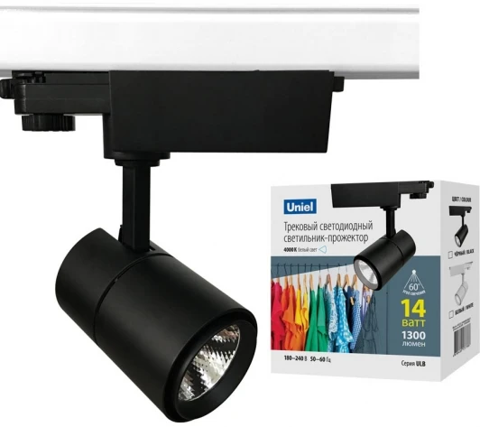 Трековый светильник Uniel ULB-T52-14W/4000K/H BLACK (LED, 220V, круглые, IP40)