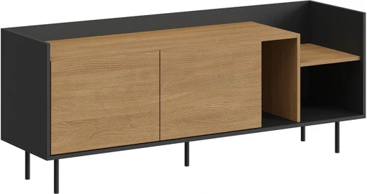 Коллекция сервантов, тумб под ТВ, комодов Look решит большинство ваших потребностей в системной организации и хранении различных вещей. Эти универсальные и лаконичные предметы органично впишутся в интерьеры любых локаций: гостиную, спальню, прихожую, рабочую зону. <br>Особенность линейки заключается в контрасте элементов. Скругленные изящные металлические ножки поддерживают внушительное основание. При этом внешний вид моделей остается лёгким и элегантным. Также игру противоположностей усиливают древесная текстура на фасадах и черный цвет боковин с задней стенкой. Что придаёт большей динамики и выразительности дизайну. Эксклюзивность и завершенный вид воссоздает рамка, возвышающаяся над верхним горизонтом. Минималистичный вид конструкциям обеспечивает скрытая фурнитура. Двери и ящики открываются плавно, без шума и усилий. Комбинируйте комоды и серванты Look для создания целостного образа интерьера. <br>Фасад включает в себя все детали в декоре Робиния Бренсон – верхний щит, двери, открытая перегородка и полка. Отделение за дверями разделено вертикальной перегородкой, в каждом отделении по одной съёмной полке. Система открывания дверей - Push-to-Open («нажал-открыл»). Соединительная фурнитура – Hettich. Материалы корпуса и фасада – ЛДСтП толщиной 16 мм. Опоры – металлические, окрашенные черной эмалью, высотой 160 мм, диаметром 20 мм, с пластиковыми подпятниками. Тумбу рекомендуется крепить к стене для защиты от опрокидывания (крепежи входят в комплект).