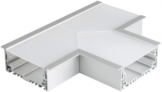 Тройной угол в сборе, для соединения 3-х профилей S2-LINIA94-F под прямыми углами 90°. Экран образует линию "Т" на плоскости. В комплекте матовый экран, соединители. Длина внешней стороны угла 200мм.