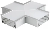 Крестовой угол в сборе, для соединения 4-х профилей S2-LINIA94-F под прямыми углами 90°. Экран образует линию "Х" на плоскости. В комплекте матовый экран, соединители. Размеры 200х200мм.
