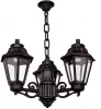 Подвесные уличные люстры FUMAGALLI серии ANNA, модель ANNA/SICHEM 3L. Подвесной светильник-люстра из трех фонарей ANNA на малых консолях BISSO. Используются для архитектурного освещения в стиле "классика". Место установки уличных люстр - арки, галереи, садовые беседки, веранды, лоджии и другие места где требуется и возможна установка подвесных фонарей. Возможна установка внутри любых помещений в качестве основного или декоративного светильника. Изготовлены в Италии, по уникальным технологиям "FUMAGALLI" из современного композитного полимера RESIN. Этот материал в 5 раз прочнее металла, не ржавеет, не окисляется, не выгорает на солнце, его не нужно красить. Все светильники пыле-влаго защищены по стандарту IP44 (защита от попадания твердых частиц более 1мм., защита от капель или брызг, падающих под любым углом). Рассеиватель выполнен из антивандального, не мутнеющего и не горючего PMMA (ПолиМетилМетаАкрилат). Срок службы светильника - не менее 20 лет. Температура использования от +60 до -90. В серии ANNA есть фонари в настенном (BISSO/ANNA, PORPORA/ANNA) подвесном (SICHEM/ANNA, SICHEM/ANNA 3L) и наземном исполнении (IAFAET.R/ANNA, ALOE.R/ANNA, ARTU/ANNA, GIGI/ANNA, RICU/ANNA, RICU/ISSO/ANNA 1L, RICU/ISSO/ANNA 2L, RICU/ISSO/ANNA 3L) со столбами разной высоты, с разным количеством и конфигурацией голов. Консоли настенных фонарей и кронштейны светильников на столбах освщения могут устанавливаться вверх/вниз. Столбы выше 150 см имеют в основе мощную стальную трубу с двойной оцинковкой. При заказе требуется выбрать цвет корпуса, цвет плафона и тип патрона (Е-27 или LED GX-53). Возможен светодиодный вариант. По стилю и дизайну серия уличных светильников ANNA похожа на светильники среднего размера серии RUT и на светильники большого размера серии NOEMI. По размеру ANNA относится к малым светильникам как серия SABA и GLOBE 250.