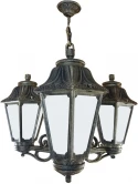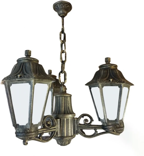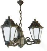 Подвесные уличные люстры FUMAGALLI серии ANNA, модель ANNA/SICHEM 3L. Подвесной светильник-люстра из трех фонарей ANNA на малых консолях BISSO. Используются для архитектурного освещения в стиле "классика". Место установки уличных люстр - арки, галереи, садовые беседки, веранды, лоджии и другие места где требуется и возможна установка подвесных фонарей. Возможна установка внутри любых помещений в качестве основного или декоративного светильника. Изготовлены в Италии, по уникальным технологиям "FUMAGALLI" из современного композитного полимера RESIN. Этот материал в 5 раз прочнее металла, не ржавеет, не окисляется, не выгорает на солнце, его не нужно красить. Все светильники пыле-влаго защищены по стандарту IP44 (защита от попадания твердых частиц более 1мм., защита от капель или брызг, падающих под любым углом). Рассеиватель выполнен из антивандального, не мутнеющего и не горючего PMMA (ПолиМетилМетаАкрилат). Срок службы светильника - не менее 20 лет. Температура использования от +60 до -90. В серии ANNA есть фонари в настенном (BISSO/ANNA, PORPORA/ANNA) подвесном (SICHEM/ANNA, SICHEM/ANNA 3L) и наземном исполнении (IAFAET.R/ANNA, ALOE.R/ANNA, ARTU/ANNA, GIGI/ANNA, RICU/ANNA, RICU/ISSO/ANNA 1L, RICU/ISSO/ANNA 2L, RICU/ISSO/ANNA 3L) со столбами разной высоты, с разным количеством и конфигурацией голов. Консоли настенных фонарей и кронштейны светильников на столбах освщения могут устанавливаться вверх/вниз. Столбы выше 150 см имеют в основе мощную стальную трубу с двойной оцинковкой. При заказе требуется выбрать цвет корпуса, цвет плафона и тип патрона (Е-27 или LED GX-53). Возможен светодиодный вариант. По стилю и дизайну серия уличных светильников ANNA похожа на светильники среднего размера серии RUT и на светильники большого размера серии NOEMI. По размеру ANNA относится к малым светильникам как серия SABA и GLOBE 250.