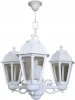 Подвесные уличные люстры FUMAGALLI серии SABA, модель SABA/SICHEM 3L. Подвесной светильник - трехрожковая люстра из трех фонарей SABA на малых консолях BISSO, подвешеный на цепочке SICHEM. Используются для архитектурного и декоративного освещения в стиле "классика". Место установки уличных люстр - арки, галереи, садовые беседки, веранды, лоджии и другие места где требуется и возможна установка подвесных фонарей. Возможна установка внутри любых помещений в качестве основного или декоративного светильника. Изготовлены в Италии, по уникальным технологиям "FUMAGALLI" из современного композитного полимера RESIN. Этот материал в 5 раз прочнее металла, не ржавеет, не окисляется, не выгорает на солнце, его не нужно красить. Все светильники пыле-влаго защищены по стандарту IP44 (защита от попадания твердых частиц более 1мм., защита от капель или брызг, падающих под любым углом). Рассеиватель выполнен из антивандального, не мутнеющего и не горючего PMMA (ПолиМетилМетаАкрилат). Срок службы светильника - не менее 20 лет. Температура использования от +60 до -90. В серии SABA есть фонари в настенном (BISSO/SABA, PORPORA/SABA) подвесном (SICHEM/SABA) и наземном исполнении (IAFAET.R/SABA, ALOE.R/SABA, ARTU/SABA, GIGI/SABA, RICU/SABA, RICU/ISSO/SABA 1L, RICU/ISSO/SABA 2L, RICU/ISSO/SABA 3L) со столбами разной высоты, с разным количеством и конфигурацией голов. Консоли настенных фонарей и кронштейны светильников на столбах освещения могут устанавливаться вверх/вниз. Столбы выше 150 см имеют в основе мощную стальную трубу с двойной оцинковкой. При заказе требуется выбрать цвет корпуса, цвет плафона и тип патрона. Возможен светодиодный вариант с цоколем GX-53. По стилю и дизайну серия уличных светильников SABA похожа на светильники среднего размера серии SALEM и на светильники большого размера серии SILOE. По размеру SABA относится к малым светильникам как серия ANNA и GLOBE 250.