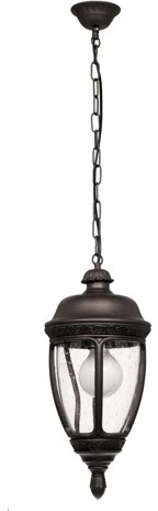 Уличный светильник подвесной 000048028 от российского бренда Мелодия Света изготовлен из металла в коричневом цвете. Стиль – замковый, винтаж. Модель имеет 1 плафон из стекла, подходит для установки на улице, в саду, на даче, рассчитана на лампочки с цоколем 1xE27 мощностью 40 Вт. Освещаемая площадь до 4 кв. м. Питание от сети 220 В. Габариты: ширина 240 мм, высота 980 мм, диаметр 240 мм. Заказывайте Мелодия Света 000048028 онлайн по низкой цене с гибкими условиями доставки на Fedomo.ru!
