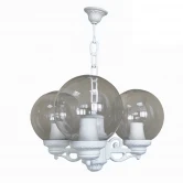 Подвесной уличный светильник FUMAGALLI серии GLOBE 250, модельGLOBE 250/SICHEM 3L. Подвесной светильник-люстра из трех фонарей GLOBE 250 на консолях BISSO. Используются для архитектурного освещения в стиле "классика". Место установки уличных люстр - арки, галереи, садовые беседки, веранды, лоджии и другие места где требуется и возможна установка подвесных фонарей. Возможна установка внутри любых помещений в качестве основного или декоративного светильника. Изготовлены в Италии, по уникальным технологиям "FUMAGALLI" из современного композитного полимера RESIN. Этот материал в 5 раз прочнее металла, не ржавеет, не окисляется, не выгорает на солнце, его не нужно красить. Все светильники пыле-влаго защищены по стандарту IP55 (Пыленепроницаемые, защита от водяных струй с любого направления). Рассеиватель выполнен из антивандального, не мутнеющего и не горючего PMMA (ПолиМетилМетаАкрилат). Срок службы светильника - не менее 20 лет. Температура использования от -60 до +90. В серии GLOBE 250 есть фонари в настенном (BISSO/GLOBE 250, OFIR/GLOBE 250, MIRRA/GLOBE 250, PORPORA/GLOBE 250) подвесном (SICHEM/GLOBE 250) и наземном исполнении (IAFAET.R/GLOBE 250, ALOE.R/GLOBE 250, ARTU/GLOBE 250, GIGI/GLOBE 250, RICU/GLOBE 250, RICU/ISSO/GLOBE 250 1L, RICU/ISSO/GLOBE 250 2L, RICU/ISSO/GLOBE 250 3L) со столбами разной высоты, с разным количеством и конфигурацией голов. Консоли настенных фонарей и кронштейны светильников на столбах освщения могут устанавливаться вверх/вниз. Столбы выше 150 см имеют в основе мощную стальную трубу с двойной оцинковкой. При заказе требуется выбрать цвет корпуса, цвет плафона и тип патрона. По стилю и дизайну серия уличных светильников GLOBE 250 похожа на светильники большого размера GLOBE 400 и на светильники среднего размера GLOBE 300. Тип крепления: Монтажный крючок (нет в комплекте). Комплектация: С уличной лампой "FUMAGALLI" яркостью 800Lm. Спец. для улицы, с защитой от скачков напряжения, перепадов температуры и повышенной влажности.