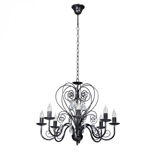 Люстра подвесная кованая V1179/8 от компании Vitaluce устанавливается на металлический крюк. Классическая люстра со свечами украшена хрусталем и прекрасно подойдет в качестве источника основного света для гостиной, кафе, кухни, кабинета. Основной цвет модели - серебро, материал арматуры - металл. Модель оснащена цоколем E14 (8xE14), имеет 8 лампочек с общей мощностью 480W и напряжением 220V. Светильник поддерживает подключение диммера. Габариты: высота - 1120 мм, диаметр - 700 мм. Лампочки в комплект не входят. Лучшая цена и условия доставки на Vitaluce V1179/8 в интернет-магазине Fedomo.ru.