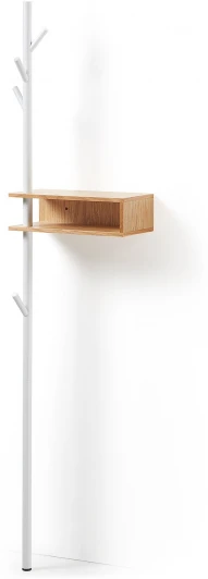 Вешалка Belgrad безупречна в своем минималистичном исполнении. Сделанная из металла стойка прочна и надежна. Расположенные на ней как ветки дерева штырьки с легкостью выдержат и верхнюю одежду, и головной убор и даже сумку, под которую предусмотрена «веточка» пониже. Но самое очаровательное в вешалке – это наличие открытой полки для хранения из шпона дуба. Все нужное обязательно будет под рукой, вы ничего не упустите с Belgrad!