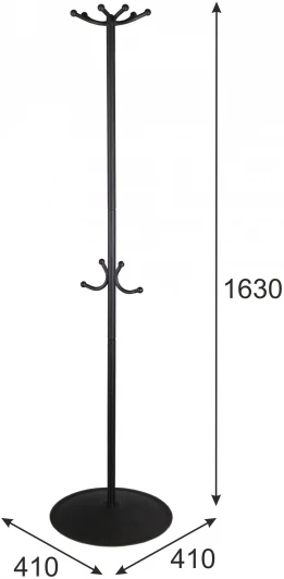 Стильная и компактная металлическая вешалка для посетителей Занимает мало места в помещении и имеет 6 крючков для одежды и 2 для сумок, также удобна для пользования вешалками-плечиками Пластиковые шарики идеально подходят под размер петель верхней одежды Вешалка моментально собирается и разбирается за счет счет стыковки трех частей стойки Сварная конструкция верхних крючков делает вешалку очень надежной Полимерное покрытие надежно защищает вешалку Металлическое основание - тяжелый стальной круг обеспечивает хорошую устойчивость ___ Вешалка напольная - незаменимый предмет для хранения верхней одежды и носимых вещей в коридор, прихожую. Будет хорошей альтернативой вешалке настенной. Отлично подойдет и для дома и как офисная. Крючки можно использовать и для плечиков, и для одежды, и для размещения органайзера. Отличный комплект в прихожую, в гардероб, в гардеробную комнату, в баню, в ванную, на балкон - вешалка напольная, настенное зеркало и банкетка в одном стиле. Вешалка стойка напольная для хранения вещей может быть как деревянная, так и металлическая. МАТЕРИАЛЫ: основание - ст.лист 2 мм, стальн. труба Ø 25 мм УПАКОВКА: 64х43х22 см, 1 место ВЕС: 4,8 кг Цвет: черный