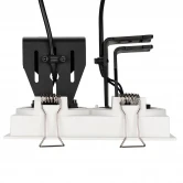 Встраиваемый карданный поворотный светильник CL-SIMPLE-S148x80-2x9W Day4000 (WH, 45 deg) мощностью 18 Вт, с дневным белым цветом свечения (4000 K) и высоким индексом цветопередачи CRI>90 для создания качественного освещения. Световой модуль отклоняется на 45°, что позволяет с лёгкостью менять направление светового луча. Особая конфигурация корпуса позволяет эффективно отводить тепло и продлевает срок службы светодиодов. Светильник с узким углом рассеивания 38° и световым потоком 1260 лм обеспечивает качественный свет. Светильник легко устанавливается с помощью пружин в монтажное отверстие 140x70 мм. В комплекте поставляется драйвер, что позволяет безопасно и быстро подключать светильник напрямую к сети переменного тока 230 В. Дополнительные аксессуары приобретаются отдельно.