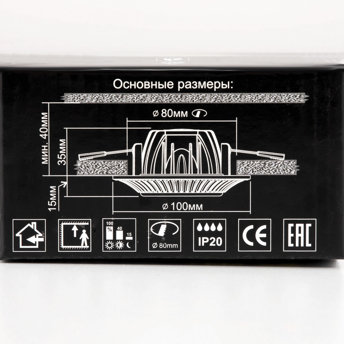Встраиваемый светодиодный светильник Citilux Боска CLD041NW0 в классическом стиле. Корпус из прочного полимера, с текстурным узором, цвет белый. Изделие оснащено ярким светодиодом с мощным радиатором охлаждения. Мощность 7Вт, цветовая температура 3500К – нейтральный свет. Встроенный ступенчатый диммер 100-40-15% управляется обычным настенным выключателем. Свет безопасный для глаз, без мерцаний и пульсаций во всех режимах работы. Модель подходит для всех типов навесных и натяжных потолков.