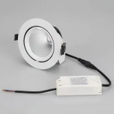 Встраиваемый поворотный круглый светильник LTD-EXPLORER-R130-20W Day4000 (WH, 38 deg) мощностью 20 Вт с дневным белым цветом свечения (4000 К) и высоким индексом цветопередачи CRI>90 обеспечивает равномерное освещение без мерцания и видимости точек светодиодов. Корпус светильника диаметром 129 мм поворачивается вокруг своей оси на 350° и отклоняется на 45°, что позволяет менять направление светового луча. Особая конфигурация корпуса позволяет эффективно отводить тепло и продлевает срок службы светодиодов. Светильник с узким углом излучения 38° и световым потоком 1600–1800 лм обеспечивает качественный свет.
