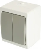 Выключатели двухклавишный STEKKER PSW10-221-54, серия Велена тип установки - открытый, размер изделия 63*75*53мм., цвет белый+серый, материал изделия Полипропилен, ABS пластик. Номинальное напряжение 250 , номинальный ток 10А, IP54