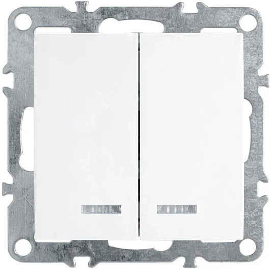 Выключатели двухклавишный STEKKER PSW10-9102-01, серия Эрна, с подсветкой (синий), тип установки - скрытый, размер изделия 70*70*40мм., цвет белый, материал изделия PP пластик/ABS пластик, латунь. Номинальное напряжение 250 , номинальный ток 10А, IP20