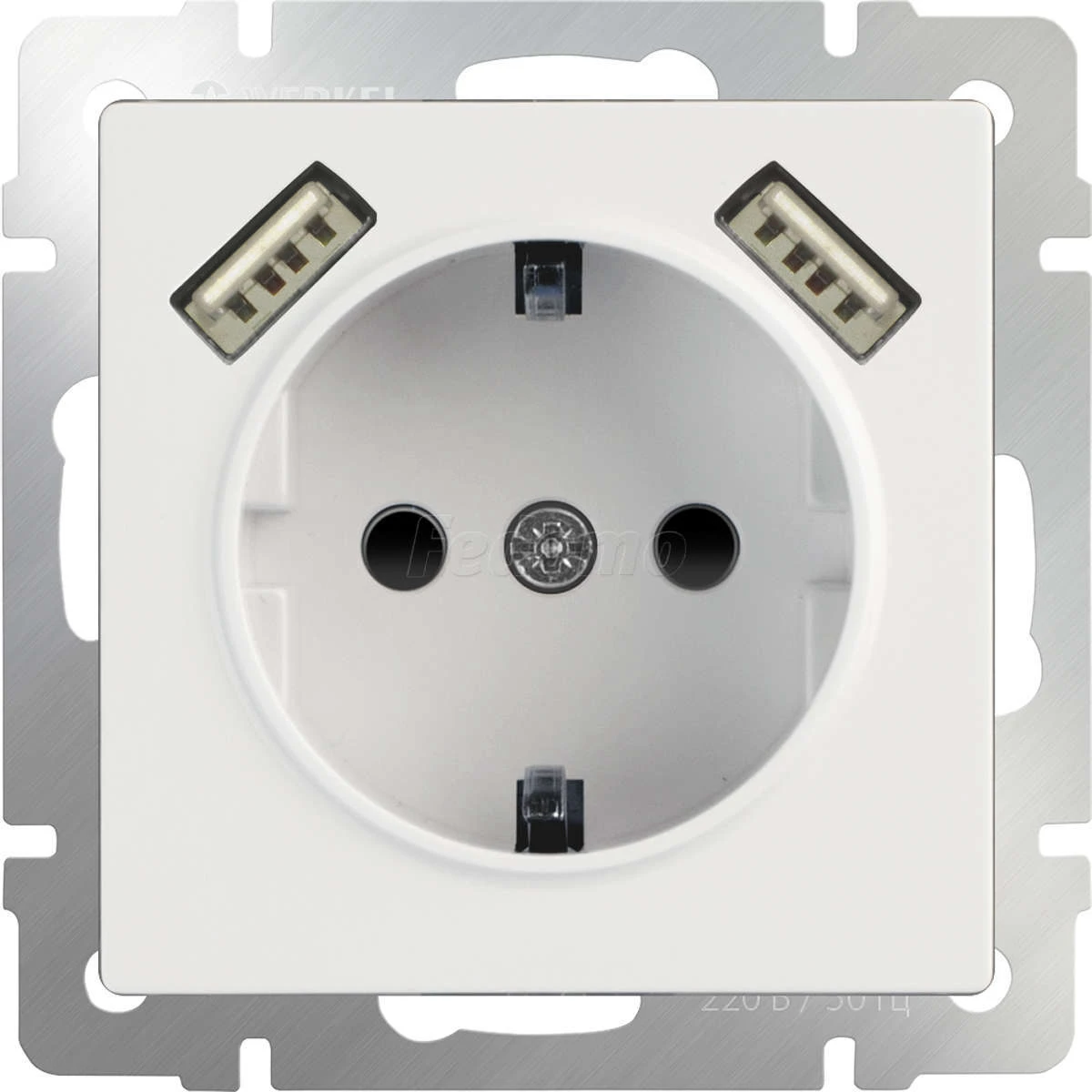 WL01-SKGS-USBx2-IP20 Розетка встраиваемая с заземлением, шторками и двумя USB Werkel, белый
